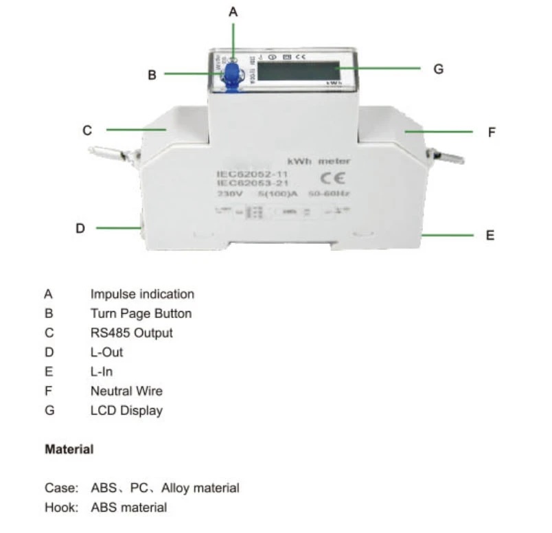 - Material of Meter housing: ABS fire resistant.