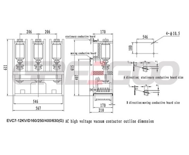 EVC8-C series 7.2kV and 12kV Vacuum Contactor, 250A to 800A, general purpose vacuum contactor, 6.6KV Vacuum Contactor, 11kv Vacuum Contactor.