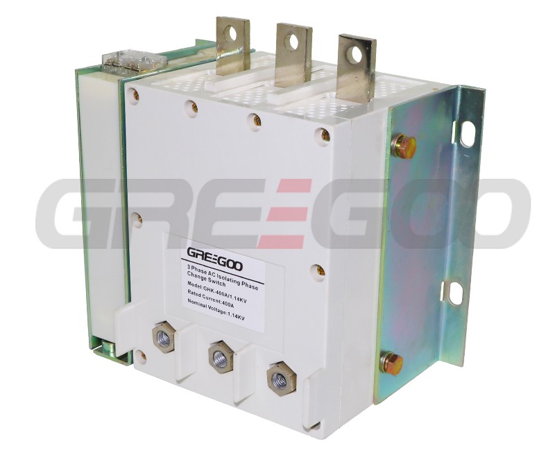 The GHK series three-phase AC isolating phase change switch is suitable for 50 Hz power systems with a main circuit rated working voltage of 1.14 kV and a rated working current of 400A or below. It is used for pre-stage isolation of starters, changing phase sequence, and can disconnect the circuit under certain conditions. It features a small size, simple structure, lightweight operation, certain breaking capacity, and a visible isolation gap.