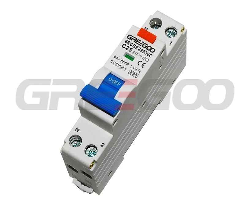 Greegoo’s new DIN mounted, combination RCD/MCBs are available as single pole devices to save valuable switchboard space. Just 18mm (1 modular width) available in current ratings of 6A, 10A, 13A, 16A, 20A, 25A, 32A and 40A, these combination devices have a short circuit interrupting capacity of 6kA, rated at 240V, 10/30/100/300mA, with a thermal/overload protection B,C - Curve.