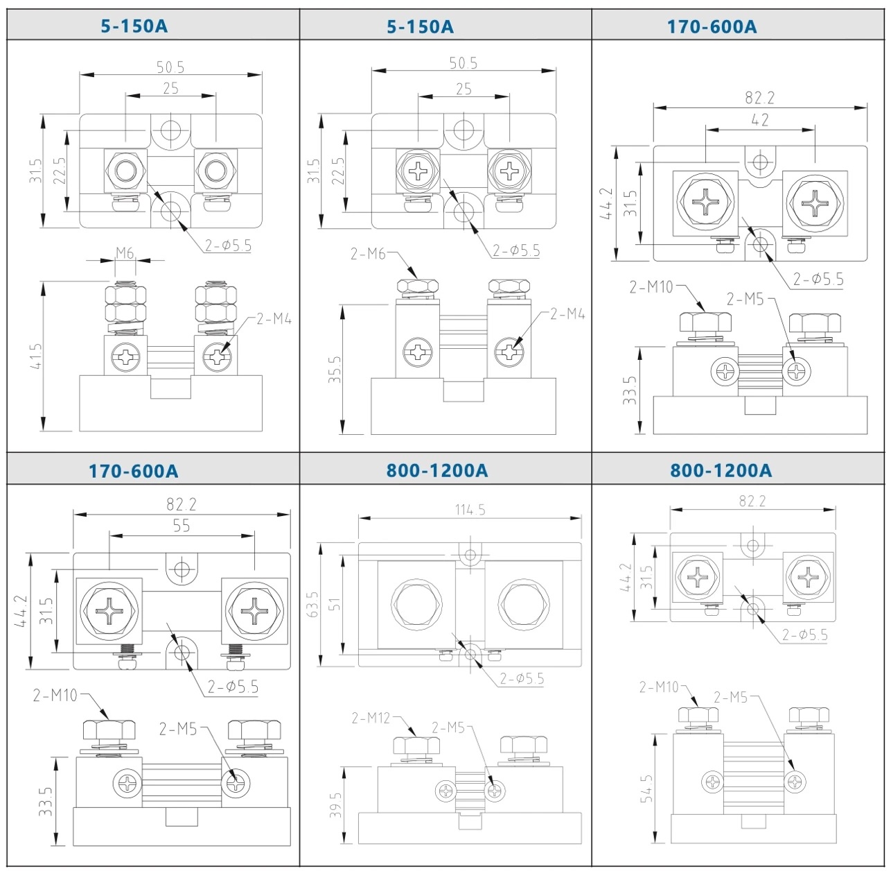 5A to 6000A, 50mV, 60mV and 75mV etc.