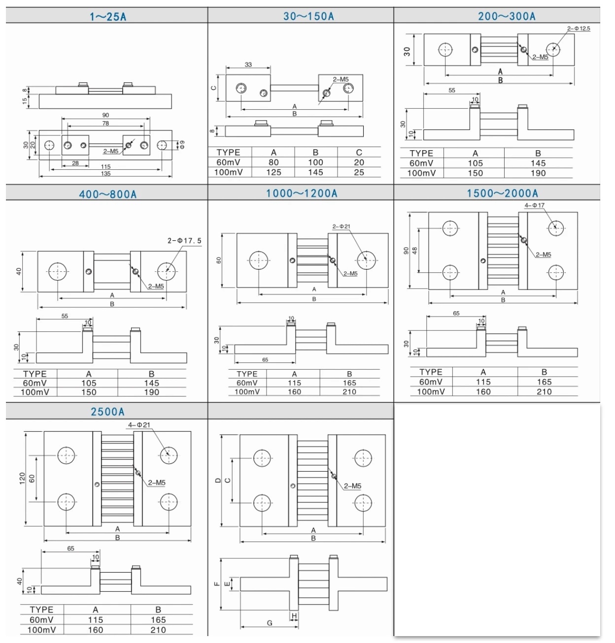 5A to 6000A, 50mV, 60mV and 75mV etc.