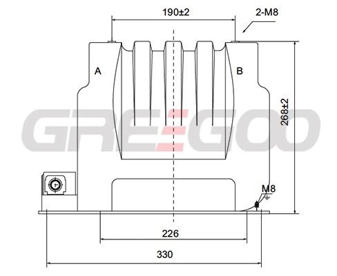 The Voltage Transformer is of post type. Its hermetically sealed by epoxy resin, with design advantages of anti-pollution, anti-damp, easy to be installed is also suitable for tropic area and free from special maintenance except periodically surface clean. Secondary outlet terminal is equipped with connection terminal box. Upside and profile of the box have a hole respectively. The two holes together with outlet terminal are for leading out. Six holes at the bottom of the PT are suitable for mounting.