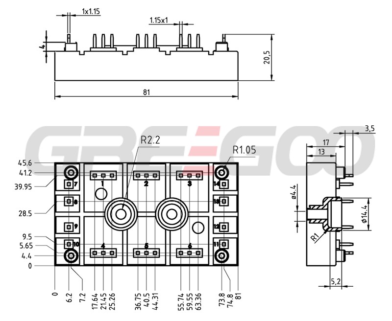 Home Products Thyristor Diode ModuleSemikron Thyristor Diode ModuleSKUT115/12-V2 Three phase antiparallel thyristor module
