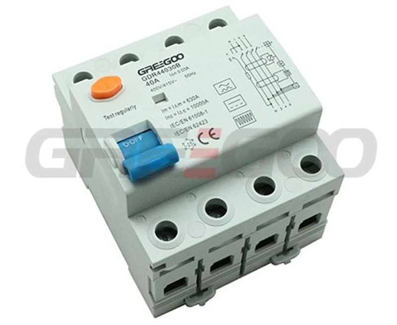 Electronic type and magnetic type 2P, 4 pole RCBO, 6-40A, A/AC type