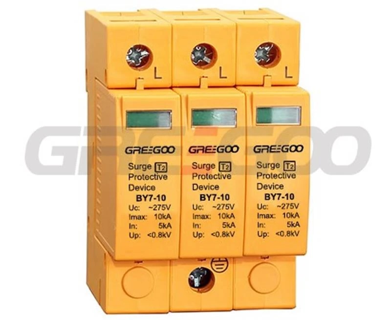 The BY7-10-275 series Surge Protection Device (SPD) features a dependable voltage protection level and a robust overload characteristic, coupled with a strong discharge current capacity, making it ideal for lightning protection in AC low voltage distribution systems. Incorporating a high-energy Metal Oxide Varistor (MOV) chip, the BY7-10-275 series SPD offers a rapid response time and reliable protection functions. This product is in full compliance with the IEC 61643-11:2011 standard.