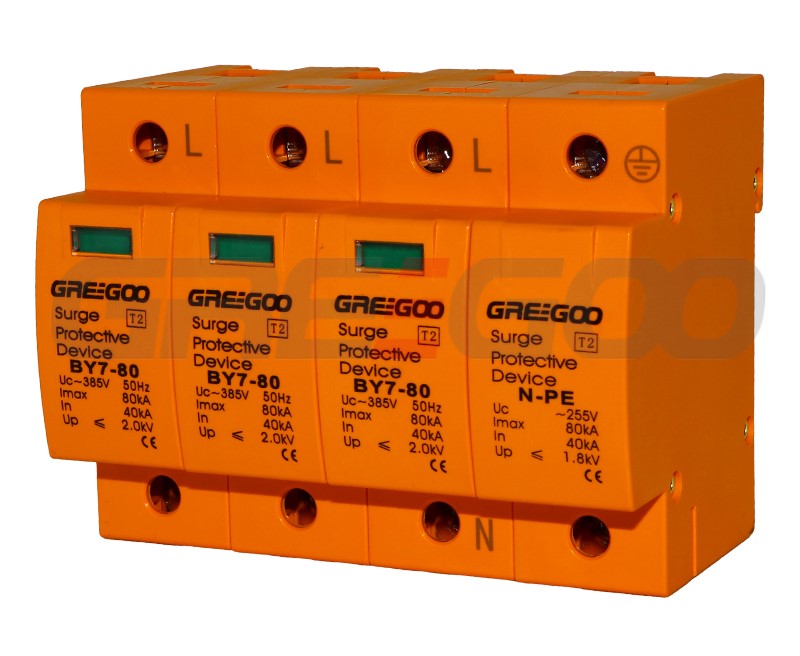 The BY7-80 series Surge Protection Device (SPD) features a dependable voltage protection level and a robust overload characteristic, coupled with a strong discharge current capacity, making it ideal for lightning protection in AC low voltage distribution systems. Incorporating a high-energy Metal Oxide Varistor (MOV) chip, the BY7-80 series SPD offers a rapid response time and reliable protection functions. This product is in full compliance with the IEC 61643-11:2011 standard.