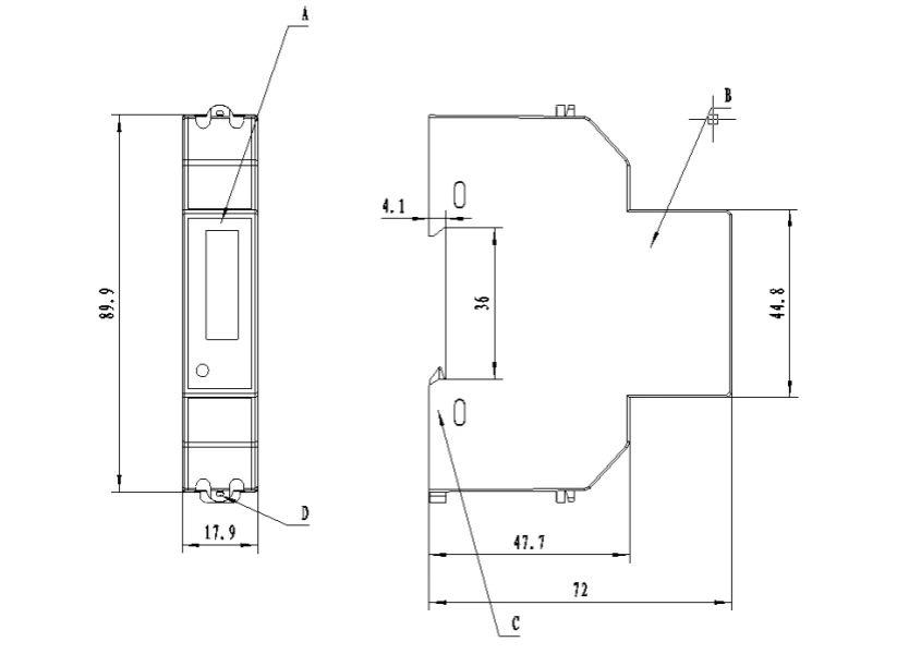 4P 5(100)A, RS485/MODBUS-RTU, single phase