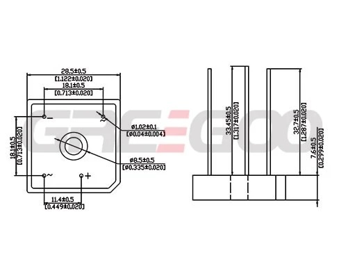 Home Products Diode Bridge RectifierMiniature Bridge Rectifier - Leaded typeSingle Phase Bridge Rectifier GBPC-W