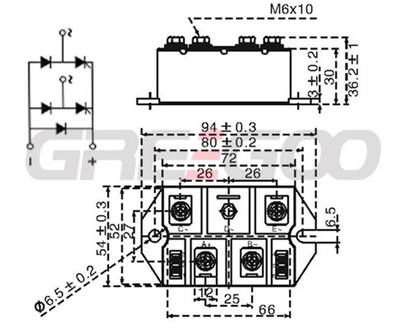 Home Products Diode Bridge ModuleHalf Controlled Bridge RectifierSingle phase half controlled bridge rectifier 160A to 200A