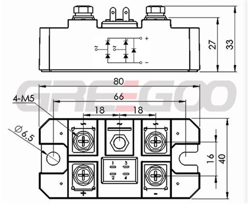 Home Products Diode Bridge ModuleHalf Controlled Bridge RectifierSingle phase half controlled bridge rectifier 40A to 150A
